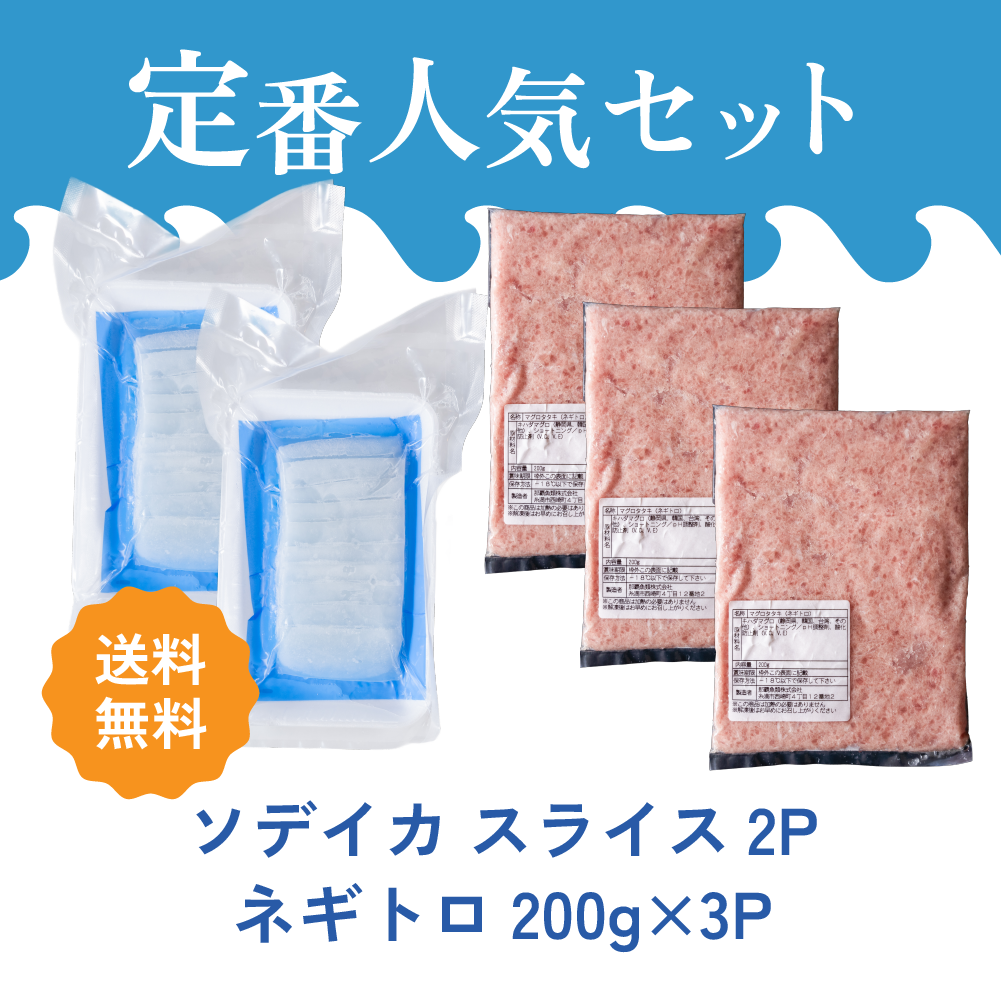 【送料無料】ソデイカスライス2P ・ネギトロ3Pセット