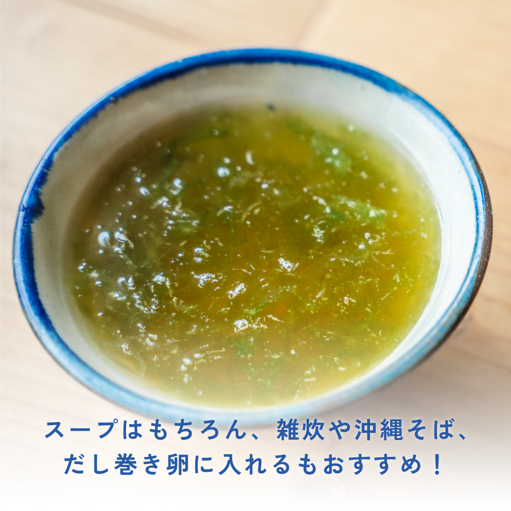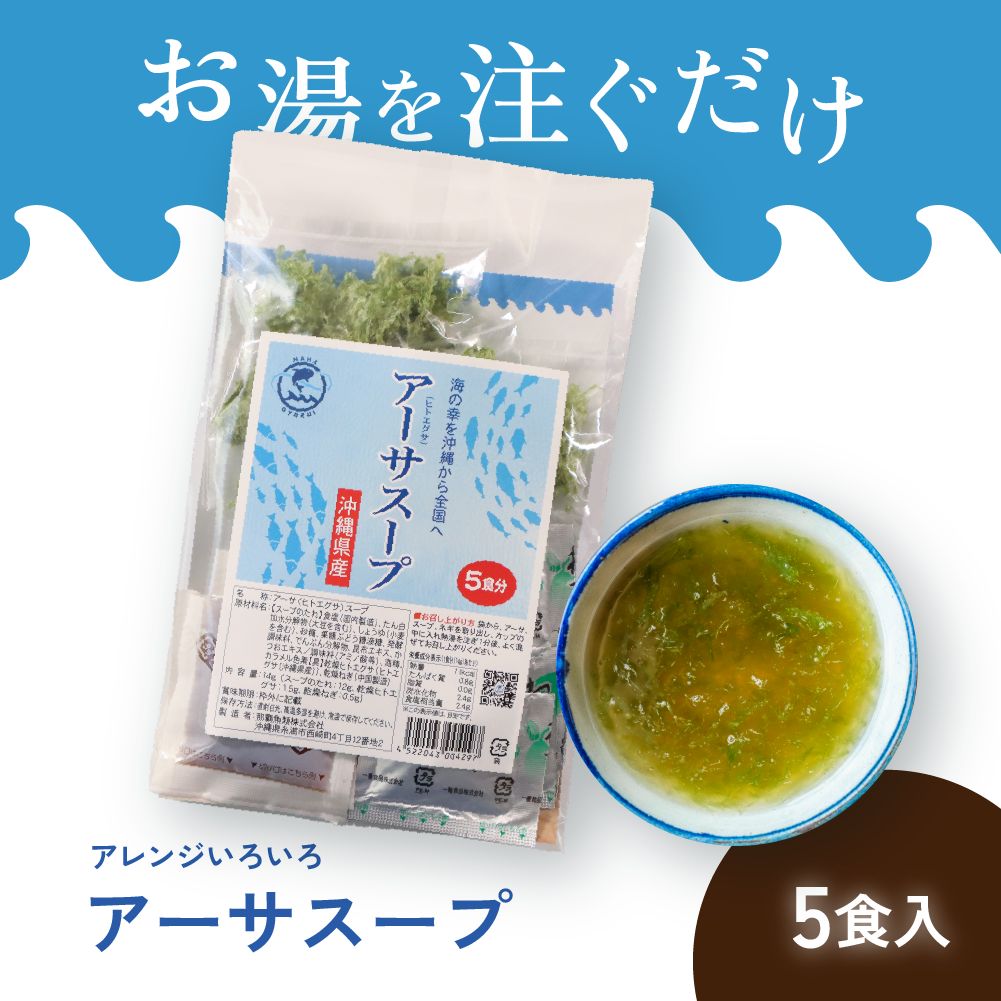沖縄の青い海で育ったアーサを使用したスープです。 お湯で戻すだけで簡単に作れます。